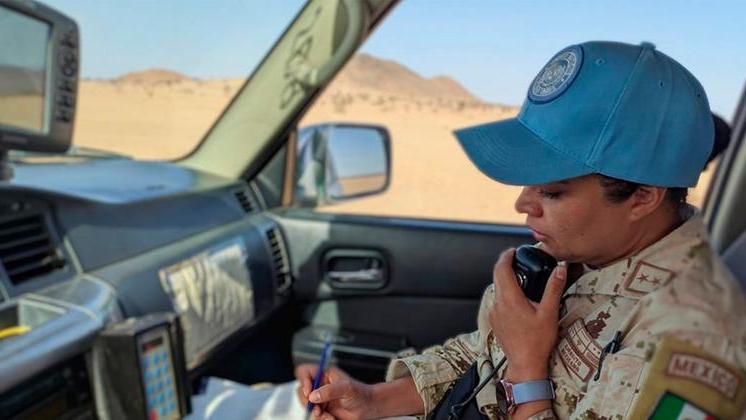 Una casco azul mexicana encabeza la sección de adiestramiento en el Sáhara Occidental