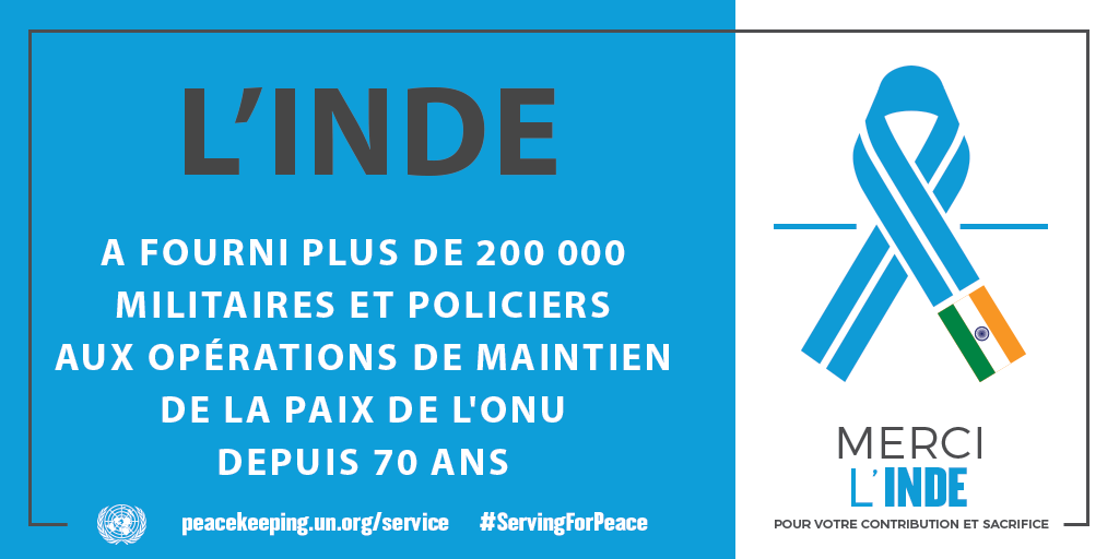 Juillet 2019 - Les Nations Unies remercient l'Inde pour sa contribution inestimable au maintien de la paix.