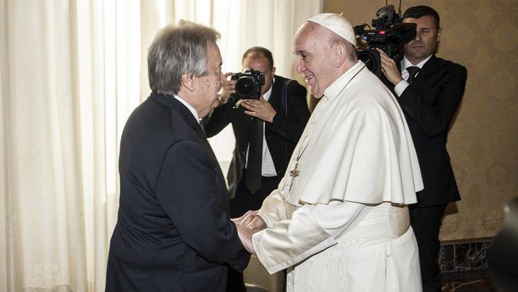 AccueilDPOactualitesAu Vatican, António Guterres rencontre le Pape François, défenseur de la dignité humaine et des valeurs de l’ONU Au Vatican, António Guterres rencontre le Pape François, défenseur de la dignité humaine et des valeurs de l’ONU 20 décembre 2019Le chef de l’ONU a été reçu vendredi en audience au Vatican par le chef de l’Eglise catholique.Partager