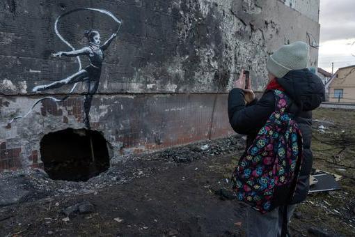 Une œuvre de street art réalisée par Banksy, graffeur célèbre dans le monde entier, est apparue sur le mur d'une maison endommagée de Borodianka, dans la banlieue de la capitale ukrainienne Kyïv. C'était au début du printemps 2022, après la retraite de l'envahisseur russe.