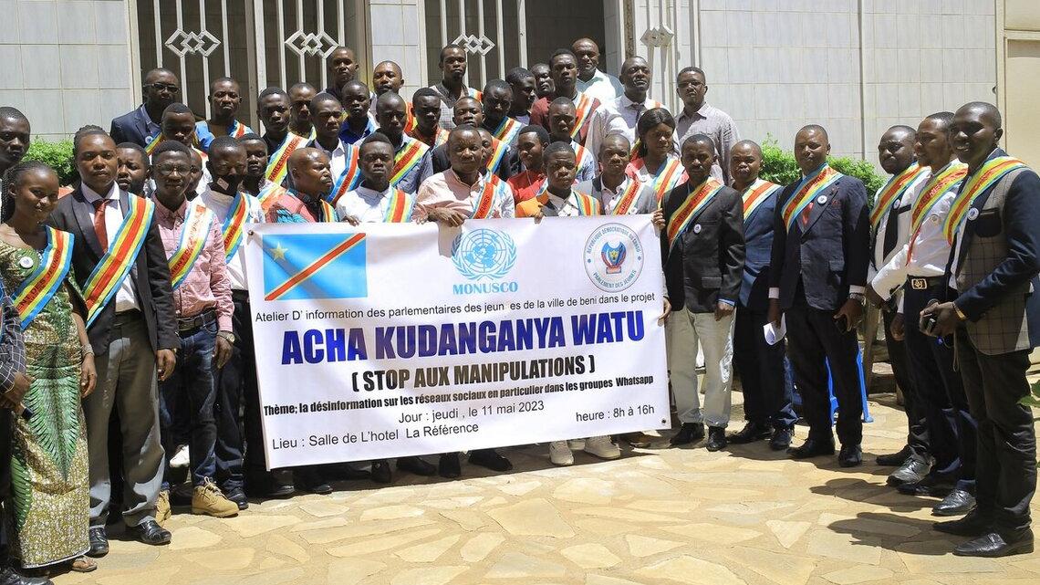 Jeudi 11 mai 2023 marquait la troisième étape de la série d’ateliers que la MONUSCO, à travers sa section des Affaires politiques de Beni au Nord-Kivu, organise sur la désinformation et ses dangers, en collaboration avec les Parlements des jeunes des villes de Beni et Butembo. Ces ateliers ont été mis sur pied dans l’objectif de la campagne intitulée « Stop aux manipulations ».