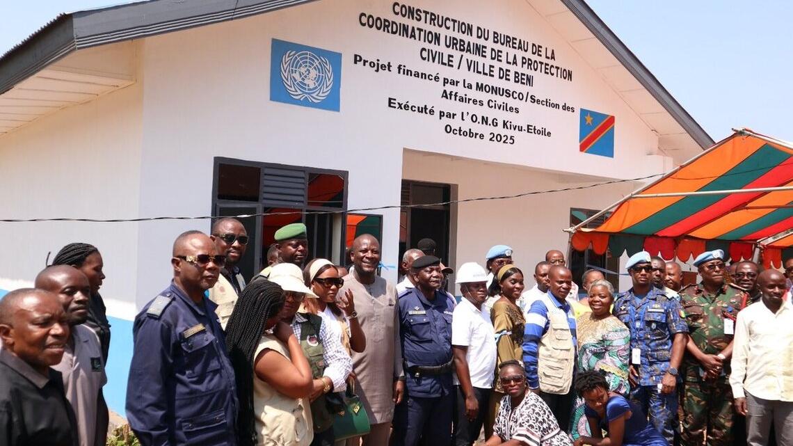 La Coordination urbaine de la Protection civile de Beni a officiellement réceptionné son nouveau siège, mardi 2 décembre. Situé derrière le bâtiment administratif de la Ville, sur le boulevard Nyamwisi, dans la commune de Beu, quartier Byahutu, ce bâtiment moderne a été financé à hauteur de 47 847 dollars américains par la MONUSCO, dans le cadre de ses projets à impact rapide (QIPs).