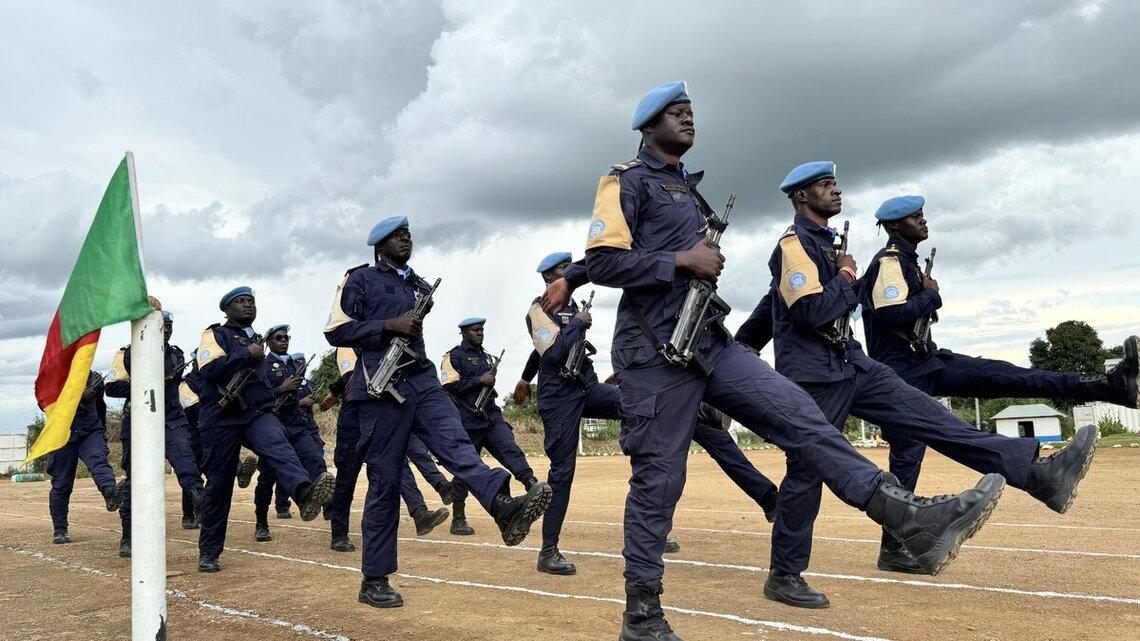 Daniel Patrick NDENGUE a également détaillé les performances remarquables de la FPUCAM1-10, qui s'est distinguée par l’accomplissement de ses missions avec une posture robuste. L'Unité a mené à bien des missions d’escorte, de protection de hautes personnalités, de maintien de l'ordre et de gestion de foule, en appui aux Forces de sécurité intérieure et au profit de la population. « En tant que commandant de contingent, je tiens à exprimer ma fierté et à adresser mes vives félicitations aux vaillants Casques bleus ici présents », a-t-il ajouté.