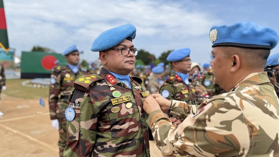 La 11ᵉ rotation du contingent bangladais (BANBAT-11) et la 3ᵉ rotation de l’unité médicale BANMED-2/3, en charge de la clinique bangladaise de niveau 2, sont arrivées au terme de leur mission au sein de la MINUSCA. En reconnaissance du professionnalisme et du dévouement de ces Casques bleus engagés pour la protection des civils et la stabilisation de la République centrafricaine, ils ont été décorés ce mercredi 5 novembre 2025 à Bouar.