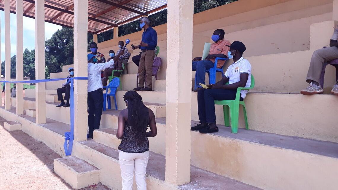La tribune du stade municipal de Bria (Est de la RCA), d’une capacité de 1200 places et comportant avec 8 gradins, réhabilitée pour un coût total d’environ 24 millions FCFA par la MINUSCA, a fait l’objet d’une remise officielle, ce 26 juin 2020, au président de la Ligue de football de la Haute Kotto, par le Chef de bureau de la MINUSCA, Imtiaz Hussain, à l’occasion d’une cérémonie qui a regroupé les acteurs principaux du sport de la sous-préfecture, à défaut du grand public, pour cause de respect des mesures de protection contre le COVID-19.