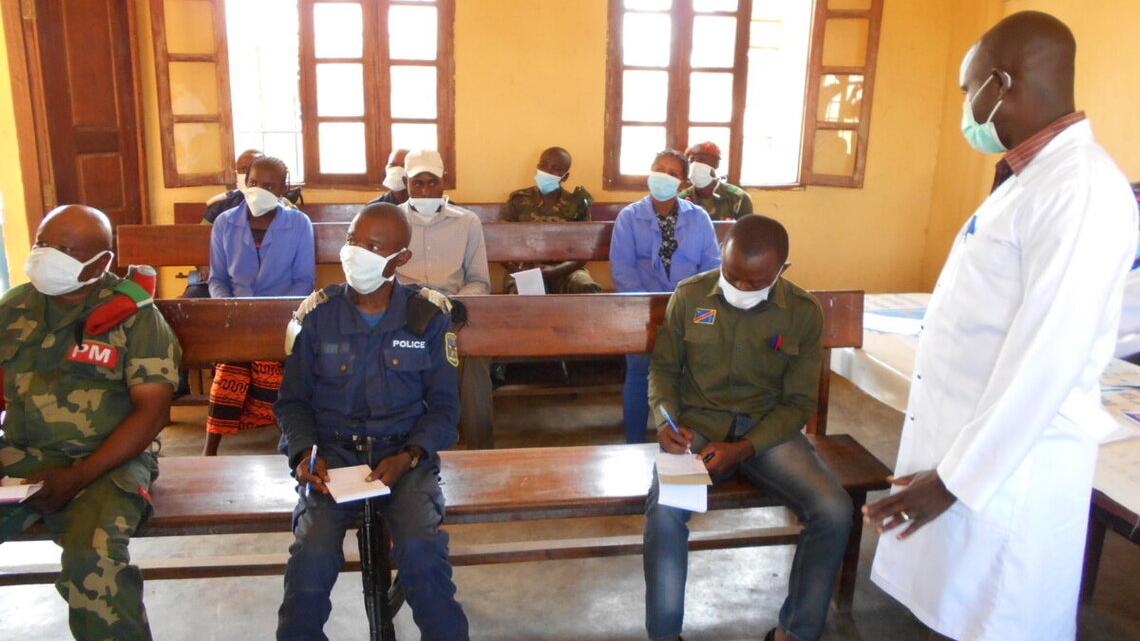 Cette formation avait deux volets : une partie théorique dans laquelle les directives des autorités congolaises (Ministre de la Justice notamment) sur les « mesures de lutte contre le Covid-19 dans les prisons » ont été passées en revue ; et une partie pratique dispensée par les deux médecins de cet établissement carcéral et au cours de laquelle les détenus et le personnel ont été sensibilisés sur les symptômes, les modes de transmission et les comportements à adopter en cas de contamination.