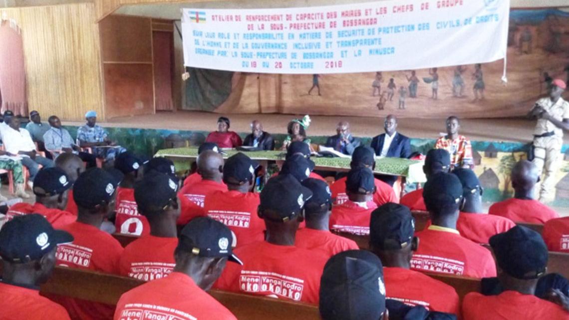 A l’initiative de la sous-préfecture de Bossangoa, 152 maires et chefs de groupes des différentes communes ont pris part, du 18 au 20 octobre 2018, à un atelier de sensibilisation et de renforcement de leurs capacités sur leurs rôles et responsabilités en matière de sécurité, de protection des civils, des droits de l’homme et de la gouvernance inclusive et transparente.