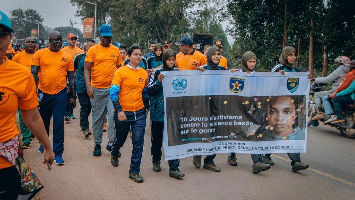 Le 6 décembre, du personnel militaire, civil et policier de la MONUSCO, des agents de la Police nationale congolaise et des organisations non gouvernementales ont parcouru près de 3,5 kilomètres, de l’aéroport de Bunia jusqu’au camp militaire Ndoromo. En tête du cortège, le chef de bureau de la MONUSCO en Ituri et le commandant du Secteur Nord, vêtus de polos orange, ont brandi des banderoles portant des messages forts : « Pas d’excuse pour les violences sexuelles ». L’initiative visait à interpeller l’opinion publique et à mobiliser les habitants de Bunia pour mettre fin à ces violences qui brisent des vies, bouleversent des familles et compromettent la paix.