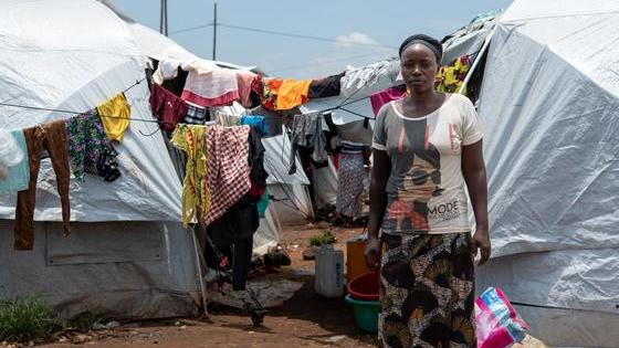 Des personnes déplacées font la queue pour recevoir l'aide du PAM dans la province du Sud-Kivu, en République démocratique du Congo. Photo : PAM/Musa Abema
