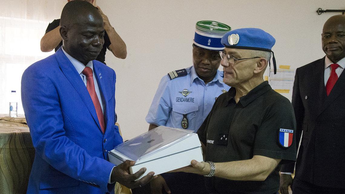 La veille, c’était au Groupement spécial d’intervention de la Gendarmerie nationale (GSGIN), de la Compagnie nationale de sécurité (CNS), et aux services de la Police judiciaire centrafricaine, de recevoir de l’équipement en armement non létal, des outils spécialisés de protection balistiques et de matériels spécifiques d’interpellation, et des équipements à destination des équipes dites projetables d’intervention et de Police judicaire, pour un montant global d’environ 161 millions de francs CFA.