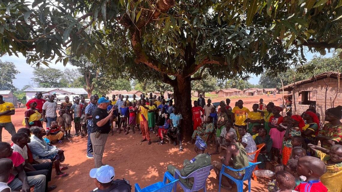 La police de la MINUSCA a conduit une patrouille conjointe avec les forces de sécurité intérieure (FSI) le 4 novembre 2024 dans le quartier de Ngouvota, situé sur l’axe Dekoa-Kaga-Bandoro, dans la préfecture de la Nana-Gribizi.