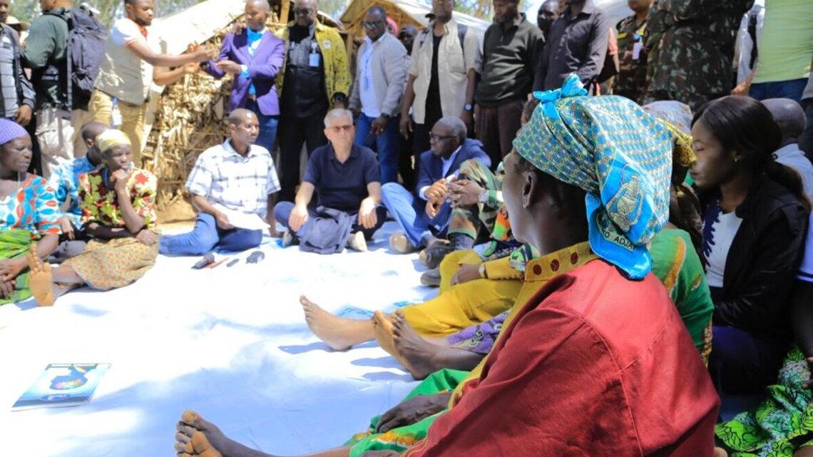 Aussitôt après cette rencontre, Jean Pierre Lacroix et sa délégation se sont rendus à Drodro pour visiter le camp des déplacés situé à une soixantaine de Km au Nord de la ville de Bunia. Ce camp fait partie de la chefferie de Bahema qui relève du territoire de Djugu.