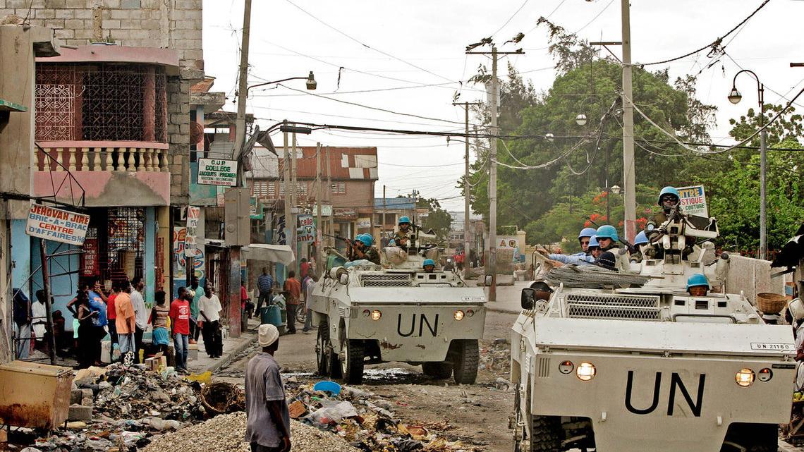 #01 Haïti demande une aide internationale en raison d’une instabilité montanteEn 2004, une crise politique et sécuritaire a conduit à une situation d’instabilité, avec des confrontations armées et des manifestations dans les rues. Le Président de la Cour suprême a assumé les fonctions de Président par intérim et requis le déploiement des Casques bleus des Nations Unies. Le Conseil de sécurité a adopté la résolution 1529, autorisant une force intérimaire multinationale en février 2004, remplacée par la MINUSTAH en juin 2004. Photo MINUSTAH/Sophia Paris