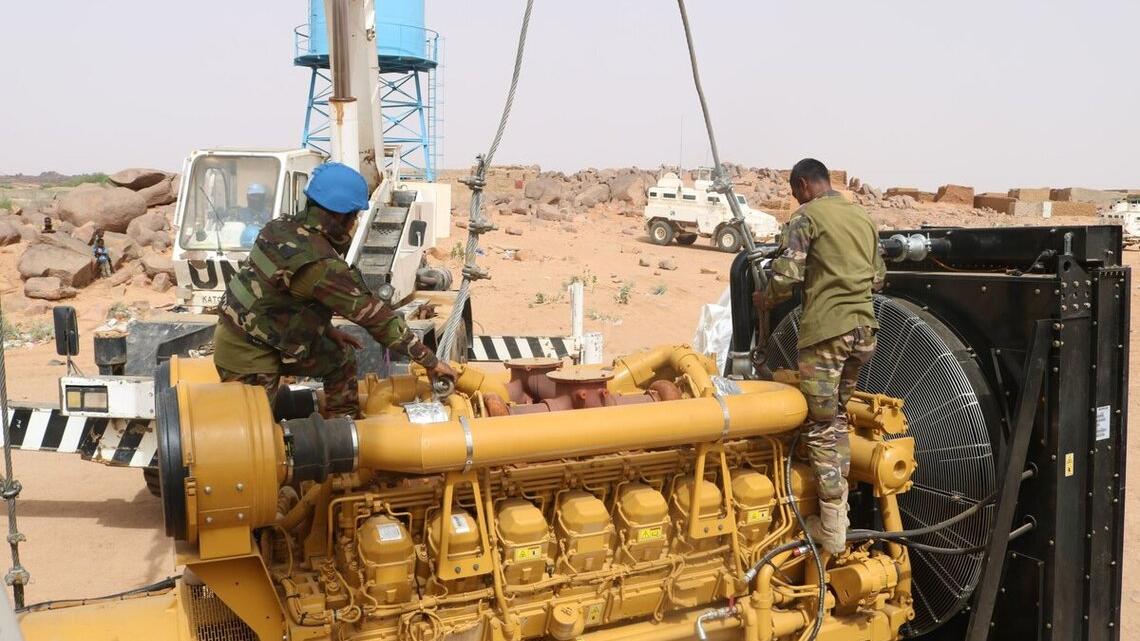 Sollicité par l'Energie du Mali (EDM-SA), la MINUSMA s’est rendue, le 9 décembre dernier, sur le site de la centrale thermique de Kidal, pour apporter son soutien logistique et technique pour le déchargement du nouveau groupe électrogène récemment acquis par la compagnie malienne d’électricité.