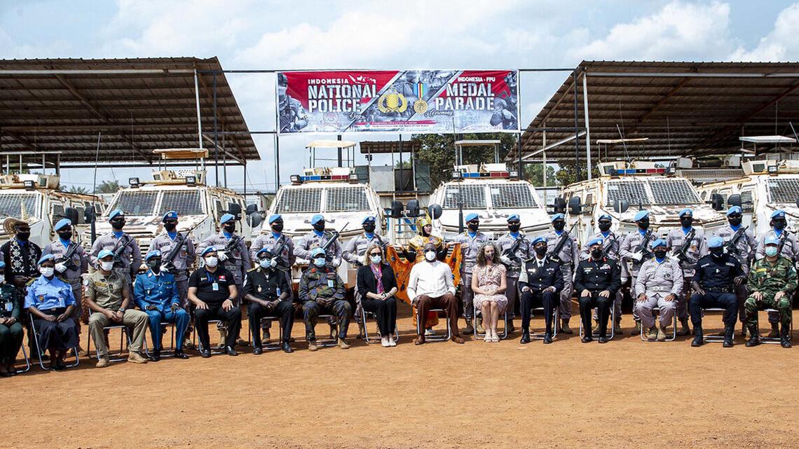 Cent quarante membres de l’Unité de Police Constituée du contingent Indonésien de la MINUSCA (FPU 2), dont 16 femmes, ont été honorés pour leur participation au retour de la paix en République centrafricaine. C’était au cours d’une cérémonie solennelle à laquelle a pris part le Représentant spécial du Secrétaire général de l’ONU et Chef de la MINUSCA, Mankeur Ndiaye, le jeudi 1er juillet 2021, à Bangui.