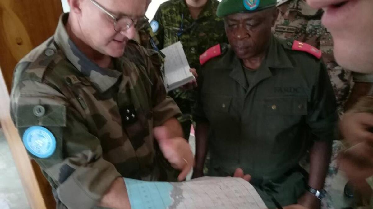 Les généraux Commis (MONUSCO) et Kasereka (FARDC) peaufinant le plan de protection de la ville d'Uvira. Photo MONUSCO/Bilamekaso Tchagbele