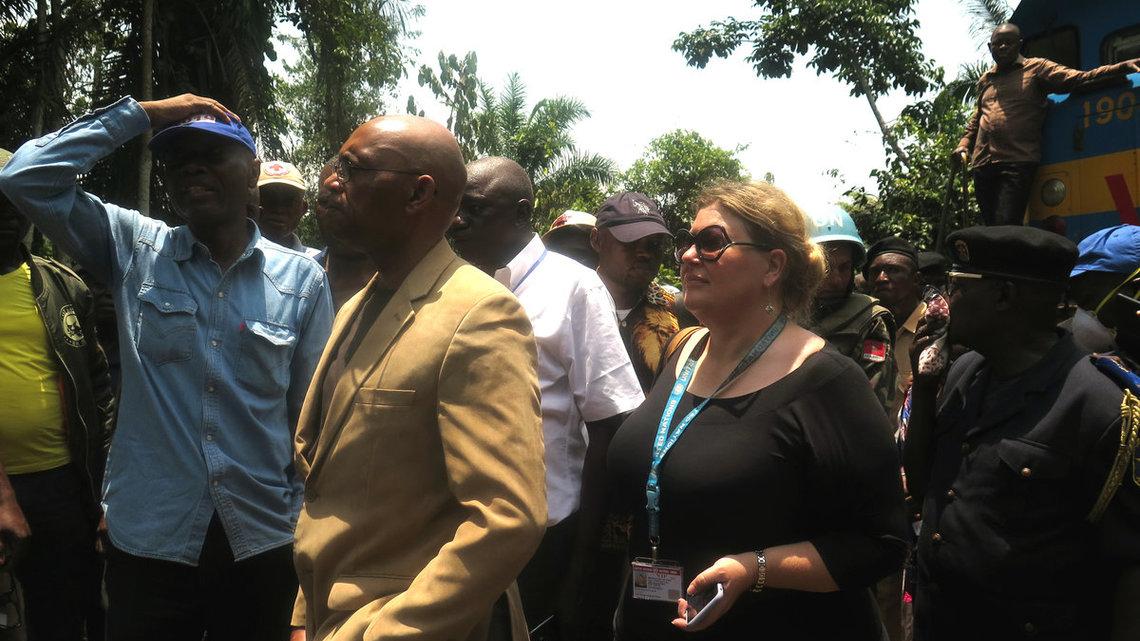 Kananga, le 26 mars 2019 - La cheffe du bureau de la MONUSCO à Kananga s’est rendue samedi 23 mars à Lwembe. Le ministre de la Solidarité et action humanitaire, dépêché de Kinshasa par le gouvernement, ainsi que le gouverneur de la province du Kasaï étaient également du voyage.