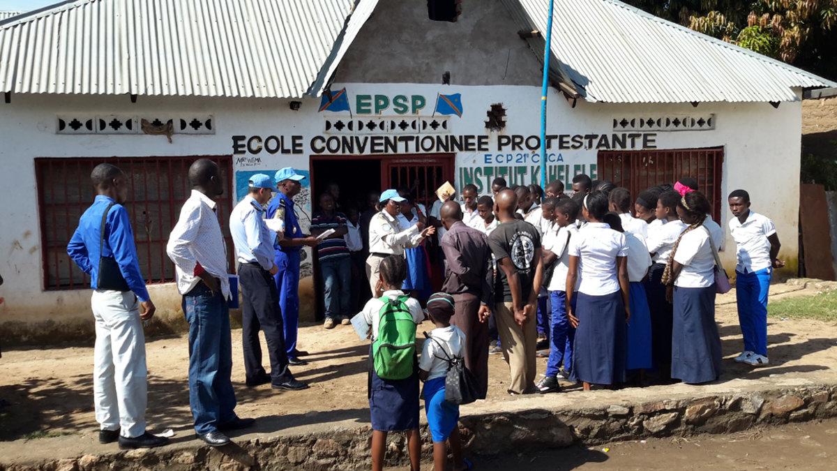 Uvira, le 7 mars 2018 - Une cinquantaine d’élèves de l’institut scolaire KAHELELE, accompagnés de leurs enseignants, ont écouté les officiers de la police des Nations Unies (UNPOL) sur les thèmes de la lutte contre l’insécurité dans la cite d’Uvira et sur les violences sexuelles basées sur le genre. Cette activité de sensibilisation, qui vise à prévenir les violences, se situe dans le cadre du mandat de protection des populations.