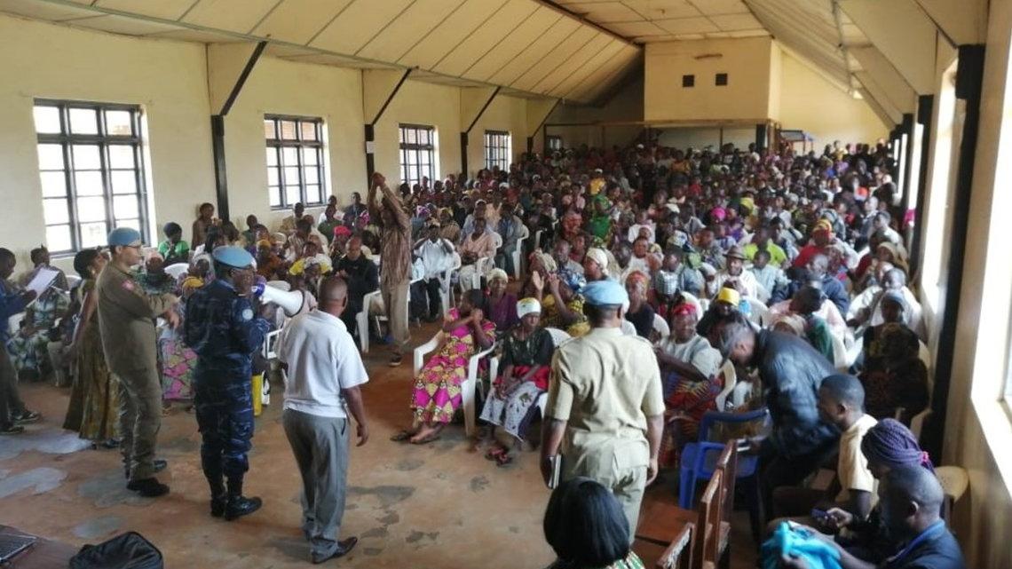 UNPOL sensibilise des déplacés de Beni, à Butembo, contre la maladie à Virus Ebola. Photo MONUSCO/UNPOL