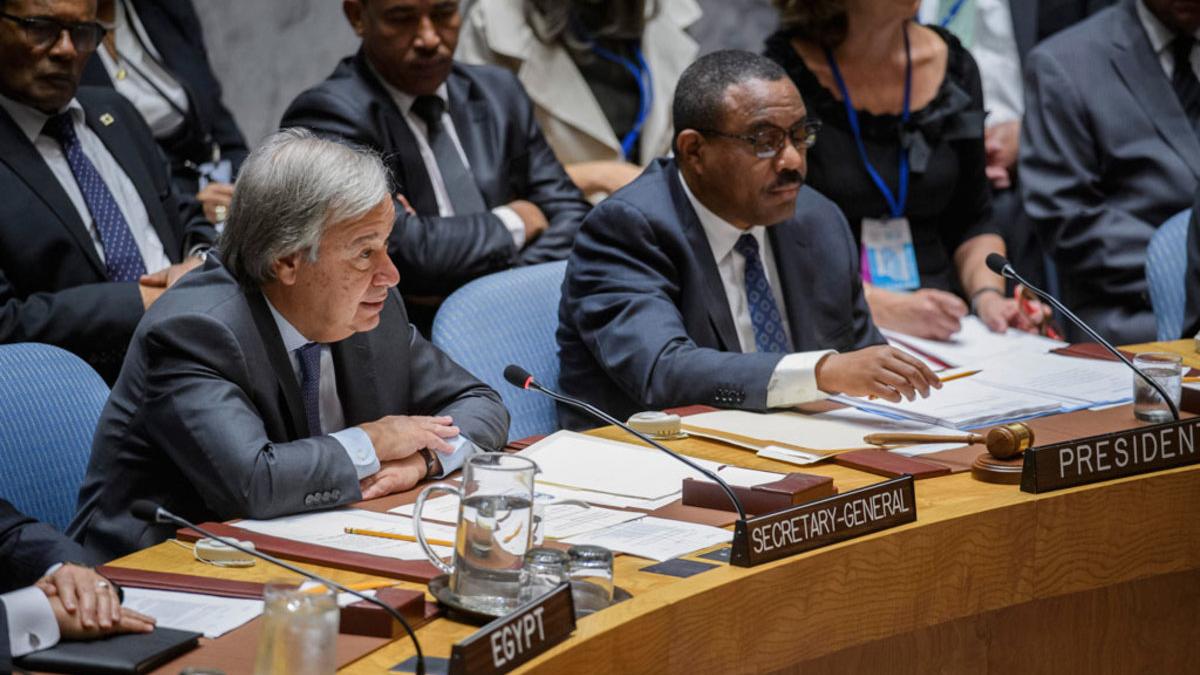 Le Secrétaire général de l’ONU, António Guterres (à gauche) devant le Conseil de sécurité. A sa droite, le Premier ministre d’Ethiopie, Hailmariam Dessalegn, dont le pays préside le Conseil de sécurité en septembre. Photo ONU/Manuel Elias