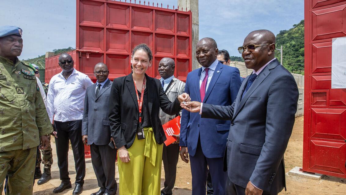 Le Ministre de la défense, Claude Rameaux Bireau, a procédé, le 22 octobre 2025, à la réception du nouveau site de stockage de munitions du Camp Kassaï, à Bangui. La cérémonie s’est déroulée en présence de plusieurs personnalités, dont le Représentant spécial adjoint intérimaire du Secrétaire général des Nations Unies pour la République centrafricaine, Ebrima Ceesay. Ce site, réhabilité et agrandi par la MINUSCA à travers le Service de lutte antimines de l’ONU (UNMAS), marque une étape importante dans le renforcement de la gestion des armes et munitions et dans le soutien à la gouvernance du secteur de la sécurité en République centrafricaine.