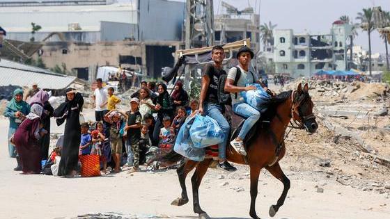 Alors que la frappe ayant tué pendant le week-end 12 jeunes dans le Golan occupé par Israël fait craindre un embrasement régional, les Gazaouis continuent de fuir après que l’armée israélienne a émis de nouveaux ordres d’évacuation pour les résidents des camps de réfugiés de Nuseirat et de Bureij.