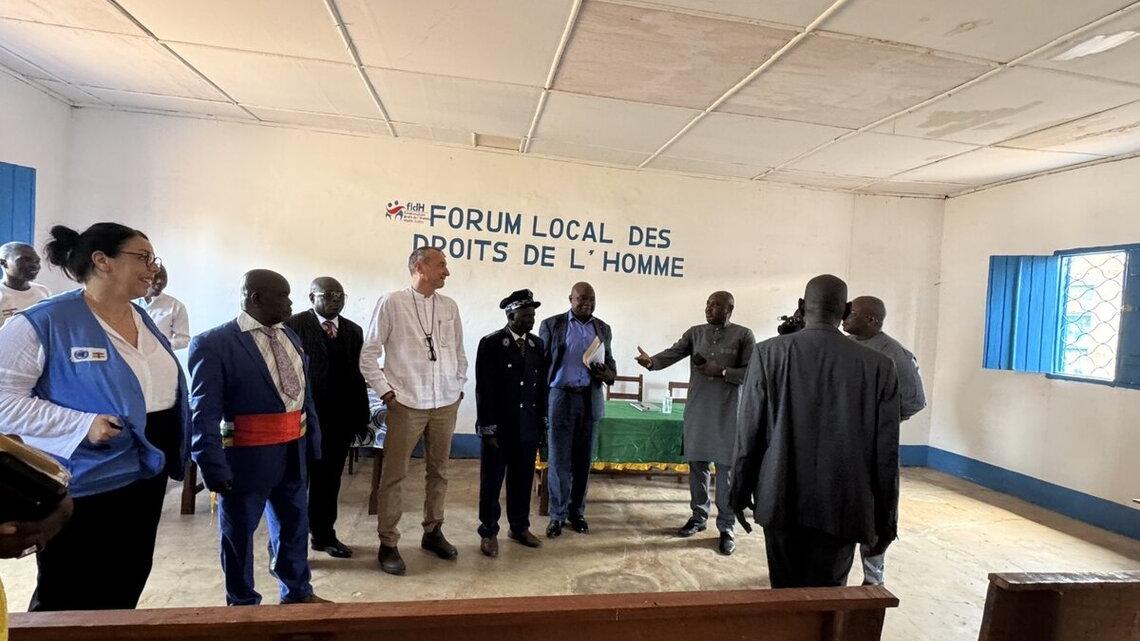 En plus du représentant du ministre de la Justice, du chef de mission de l’Union européenne en RCA et de la cheffe de la Division des droits de l’homme de la MINUSCA, la délégation de Bangui était constituée du président de la Commission nationale des droits de l’homme et du représentant d’Avocats sans frontières.