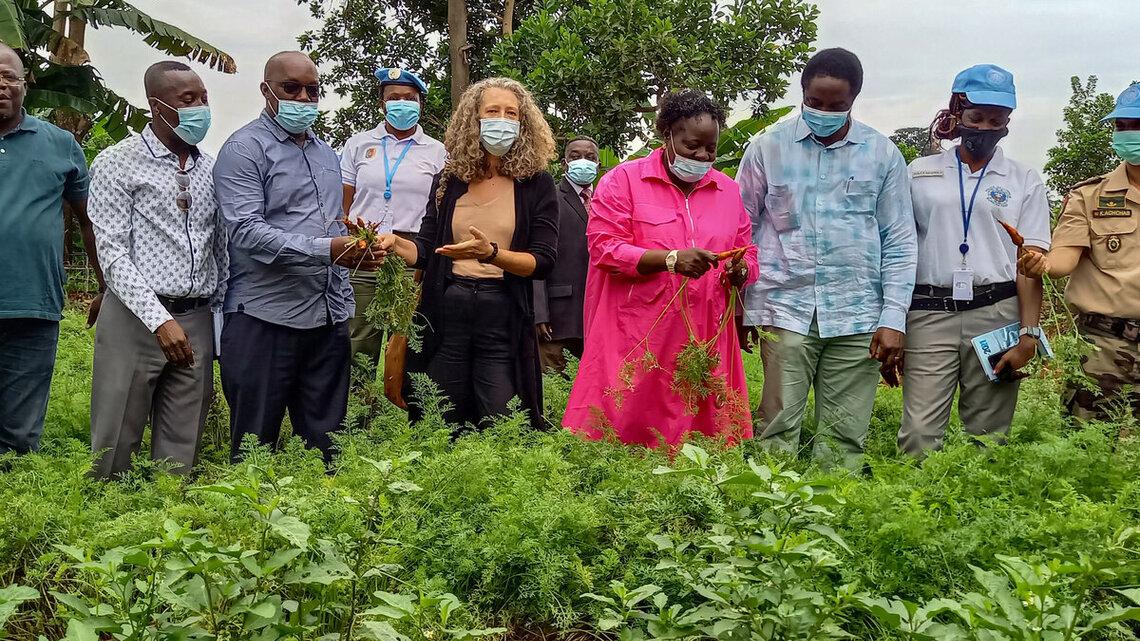 Ce sont au total 50 détenus et deux agents de ladite Maison d’arrêt qui ont été formés en culture maraichères et en saponification. La fin de cette session qui a duré trois mois a été couronnée par une cérémonie, le 10 septembre 2021, en présence de la préfète du Mbomou (sud-est de la RCA), Pierrette Benguere et de la Représentante spéciale adjointe du Secrétaire général des Nations Unies , Denise Brown.Le gouvernement centrafricain, dans sa stratégie nationale de démilitarisation des établissements pénitentiaires a entamé avec l’appui de ses partenaires dont la MINUSCA, un vaste chantier dans la réforme de son système pénitentiaire. L’autonomisation des prisonniers à travers des formations à des métiers pour leur permettre de retrouver une vie normale après avoir purgé leurs peines, est l’un des objectifs de cette action.Par cette visite, la cheffe adjointe de la MINUSCA a voulu toucher du doigt les projets réalisés à ce jour dans le cadre des projets à impact rapide. S’agissant de la formation de ces détenus, Denise Brown a déclaré que : « Ce projet, qui s’inscrit dans le cadre de la stratégie nationale de réinsertion sociale des détenus, est aussi l’occasion pour la MINUSCA à travers la Section des Affaires pénitentiaires, d’illustrer son soutien à l’Etat centrafricain dans son engagement pour la réforme du secteur pénitentiaire, conformément aux recommandations des états généraux de la Justice tenus en 2007 ».Cette initiative est un projet qui, à long terme, vise à transformer le quotidien des bénéficiaires, mais aussi à lutter contre l’insuffisance alimentaire dans la localité. « J’exhorte les autorités administratives de la prison, les forces de défense et de sécurité à continuer d’être disponible et à travailler ensemble pour le suivi de ce projet et de sa pérennisation » a dit Pierrette Benguere à cette occasion.Les détenus ayant choisi de se former en culture maraîchère ont créé un jardin potager d’une superficie d’un hectare et demi, où ils ont cultivé des tomates, du gombo, de l’oignon, entre autres. Ceux qui ont choisi la saponification ont fabriqué 584 morceaux de savons. Une partie de tous ces produits a été mise en vente sur le marché local et le reste destinée à la consommation des prisonniers.