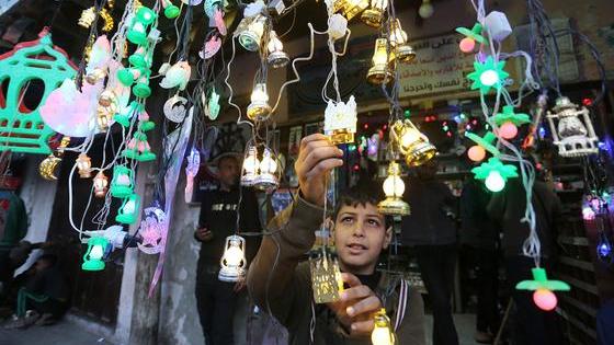 Des décorations du Ramadan, des lampes et des lanternes illuminent un camp de personnes déplacées dans le centre de Gaza où des tentes sont bricolées avec du tissu, du plastique et du bois disponibles. Elles répandent une lueur d'espoir au milieu des ravages de la guerre.