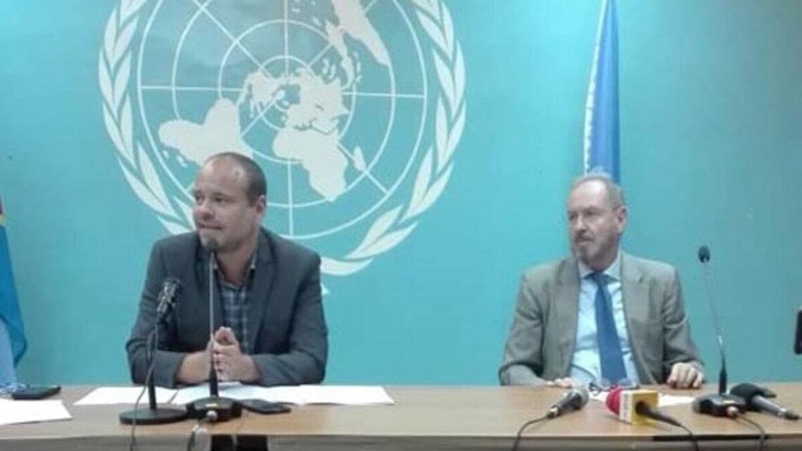 Le porte-parole de la MONUSCO, Mathias Gillmann et le Rep. Spec. adjoint, Coordonnateur résident et humanitaire, David McLachlan-Karr. Photo MONUSCO