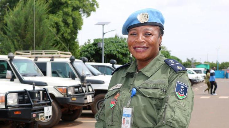 L'adjudant-chef Alizeta Kabore Kinda du Burkina Faso, actuellement en service dans la Mission multidimensionnelle intégrée de stabilisation des Nations Unies au Mali (MINUSMA), reçoit aujourd’hui le prix de la femme policière de l'année 2022 des Nations Unies.