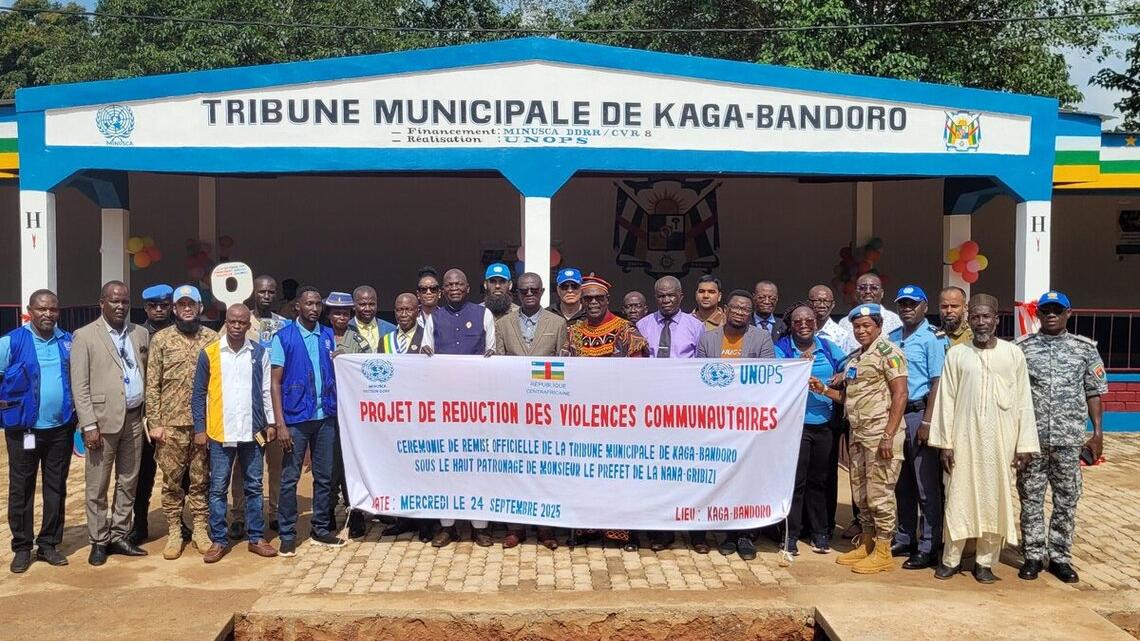 Offrir aux autorités locales un cadre approprié pouvant accueillir les cérémonies officielles de commémoration des grands événements, comme la fête de l’indépendance ou celle de la proclamation de la République, ainsi que divers autres rendez-vous majeurs dans la localité, voilà qui justifie l’initiative de doter Kaga-Bandoro d’une tribune municipale. D’une capacité de 300 places, cet édifice moderne construit par la MINUSCA leur a été officiellement remis le 24 septembre 2025.
