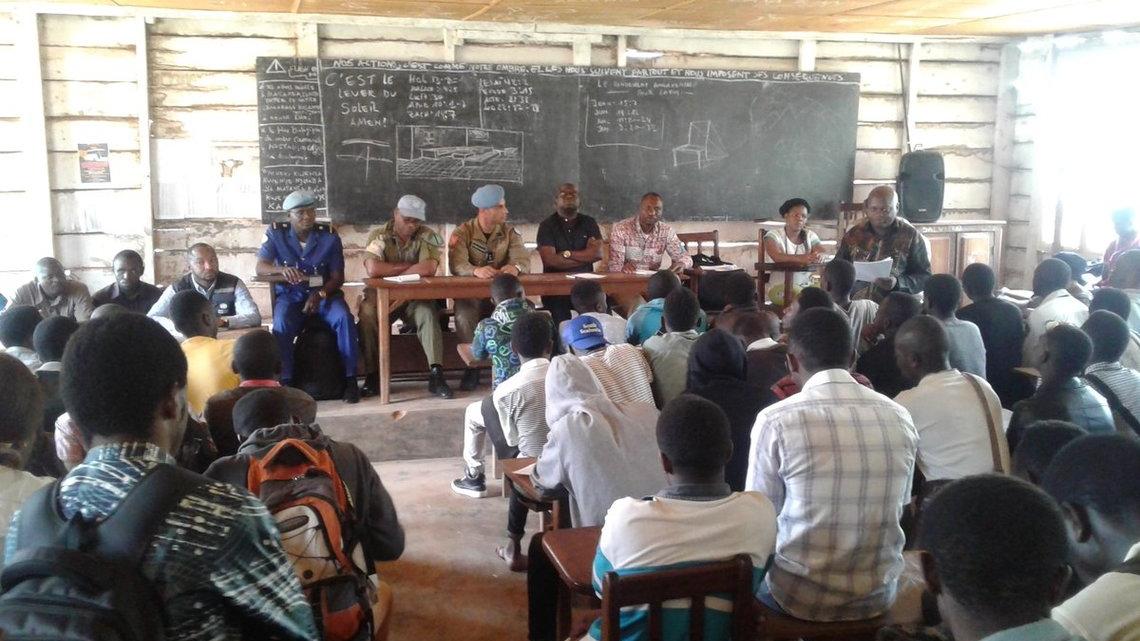 Cette séance qui se situe dans le cadre de la lutte contre la désinformation et le manque de confiance au sein de la communauté, a permis d’expliquer aux participants le rôle et l’importance des forces de sécurité (PNC, FARDC) aux côtés des équipes de la riposte mais également la contribution de la MONUSCO dans les activités de la riposte. Cette intervention s’est déroulée simultanément en langues française et swahili. L’Officier de Police Andrea LEGEMBO GAODWIN, usant de la langue swahilie s’est beaucoup appesantie sur les pratiques d’hygiènes seul gage de se prévenir de la maladie à virus individuel.
