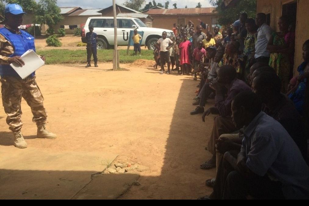 A Oicha, la Police de MONUSCO fait connaitre les numéros verts pour alerter la Police Nationale Congolaise. Photo MONUSCO/Anne Herrmann Oicha – 28 novembre 2017 : La Police de la MONUSCO, dans le cadre de la Stratégie…