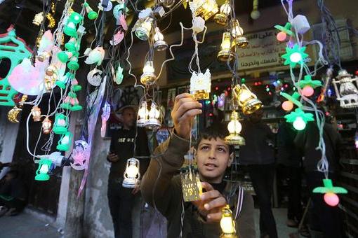Des décorations du Ramadan, des lampes et des lanternes illuminent un camp de personnes déplacées dans le centre de Gaza où des tentes sont bricolées avec du tissu, du plastique et du bois disponibles. Elles répandent une…