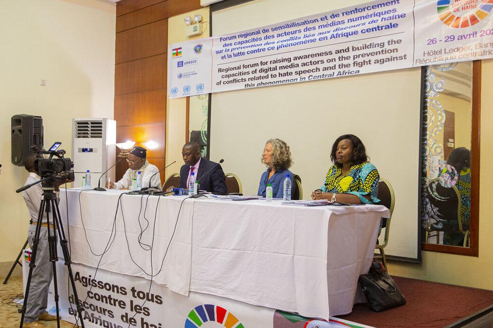 Les journalistes des médias en ligne et les blogueurs d’Afrique centrale réunis à Bangui dans un Forum sur les discours de haine.Photo Monusco\Pamela Lubaki Du 26 au 29 avril 2022, Bangui, la capitale de la République…