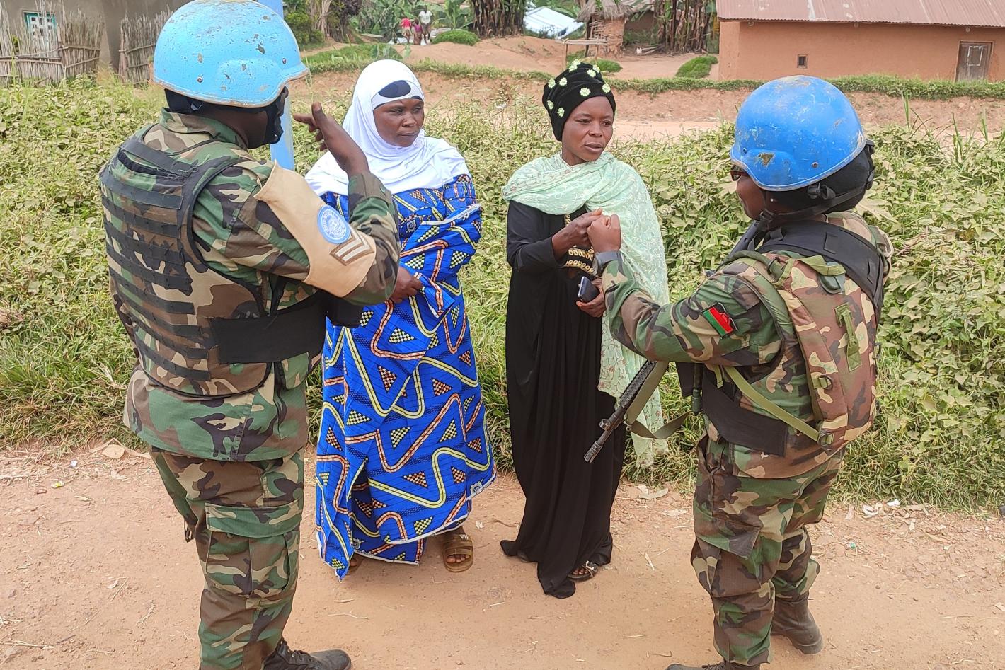 Nord-Kivu : les femmes casques bleus du Malawi encouragent les femmes de Beni à construire la paix dans leur communauté. Photo MONUSCO/Force Dans le cadre des activités de célébration de la Journée internationale de la femme…