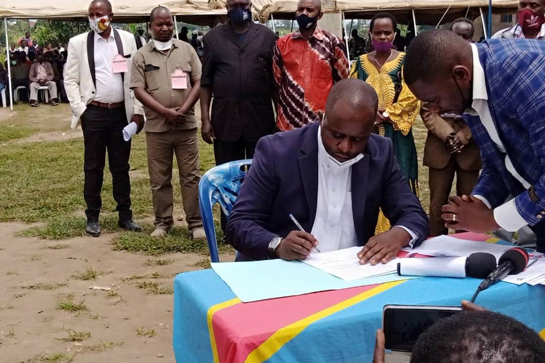 Cet acte d'engagement a été accueilli avec enthousiasme par les structures de jeunes des localités concernées. Photo MONUSCO/Sado Bahemuka La MONUSCO a facilité la réconciliation entre deux communautés du territoire d’Irumu…