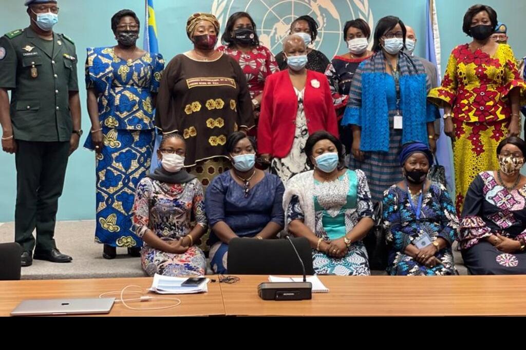 Photo de famille après la 3e réunion du cadre régulier d’échange entre la MONUSCO et le réseau des femmes leaders africaines (AWLN) le 14 juin 2021 a Kinshasa. Comment s’organise le travail de la Force de la MONUSCO et de la…