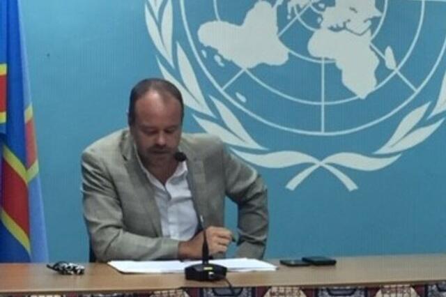 Le porte-parole de la MONUSCO, Mathias Gillmann et le Directeur du Bureau conjoint aux droits de l’homme, Abdoul Aziz Thioye lors de la conférence du 3 février. Photo MONUSCO Abdoul Aziz Thioye : "Il y a eu une recrudescence…