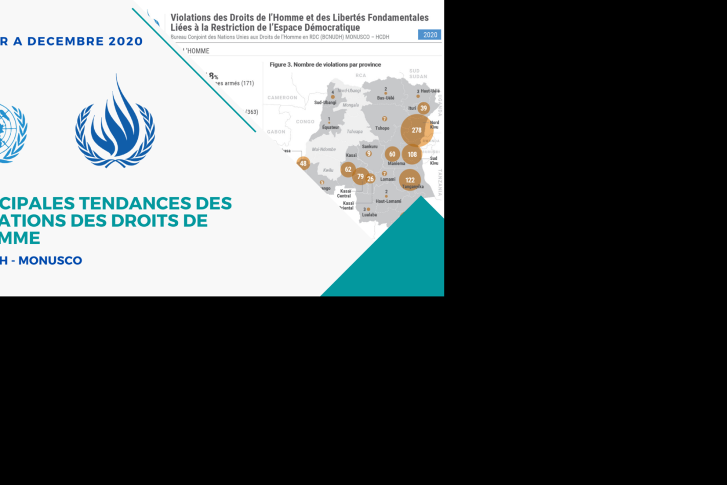 En 2020, le BCNUDH a documenté 7.909 violations et atteintes aux droits de l’homme en République démocratique du Congo, ce qui représente une moyenne de 659 violations par mois. Ces chiffres sont en hausse de l’ordre de 21%…