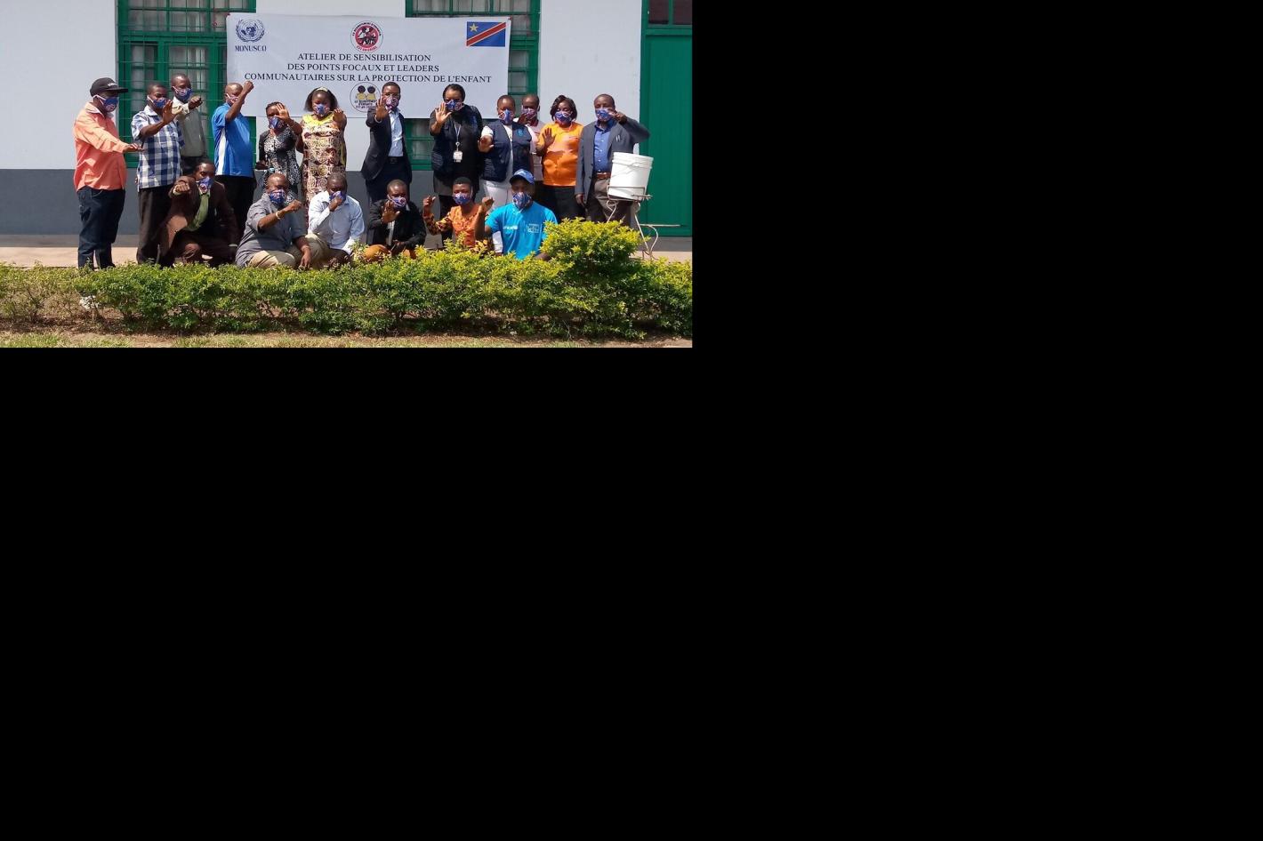 Photo de famille à l'issue d'une formation pour 15 Points Focaux et Leaders communautaires sur la protection de l’Enfant, à l’initiative de la Section de Protection de l’Enfant de Kalemie. Photo MONUSCO/François-Xavier Mybe…