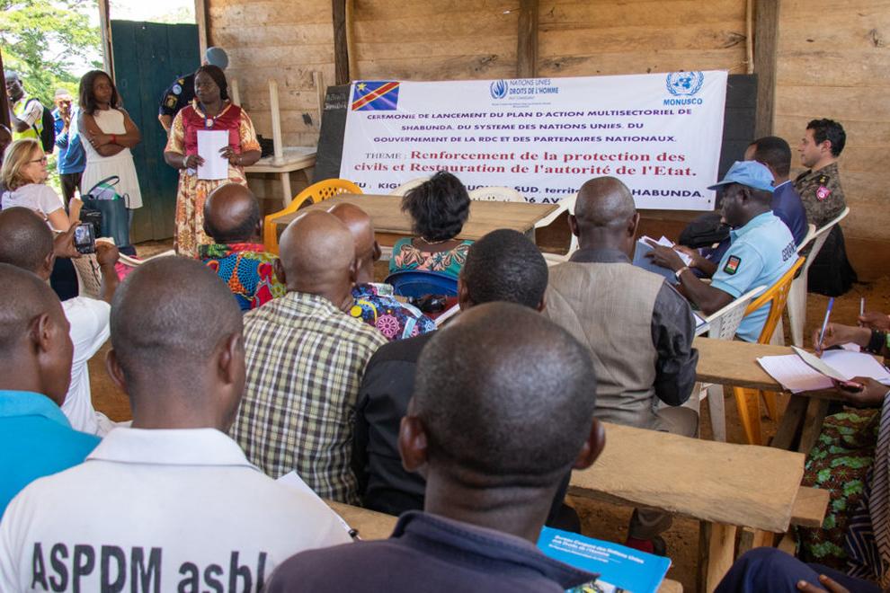 A l'occasion de lancement du plan d'Action Shabunda à Kigulube. Photo MONUSCO/Alain LIKOTA Shabunda, le 23 mars 2019 – Le Plan d’Action de Shabunda a été lancé le samedi 23 mars 2019 à Kigulube, localité du groupement de…