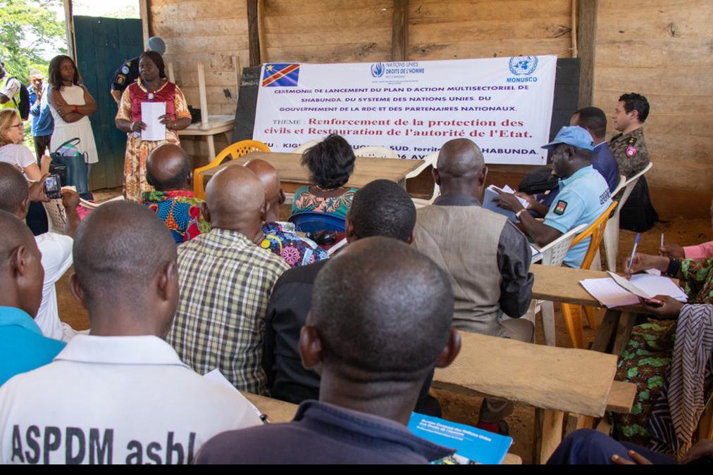 A l'occasion de lancement du plan d'Action Shabunda à Kigulube. Photo MONUSCO/Alain LIKOTA Shabunda, le 23 mars 2019 – Le Plan d’Action de Shabunda a été lancé le samedi 23 mars 2019 à Kigulube, localité du groupement de…