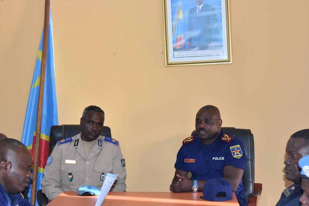 Le chef de la Police MONUSCO et sa delegation le Général Henri KAPEND, Commissaire Provincial de la PNC. Photo MOUSCO/UNPOL Nouko Ange Bunia, le 11 mai 2018 – Le Général Awalé ABDOUNASIR, Chef de la Composante Police MONUSCO…