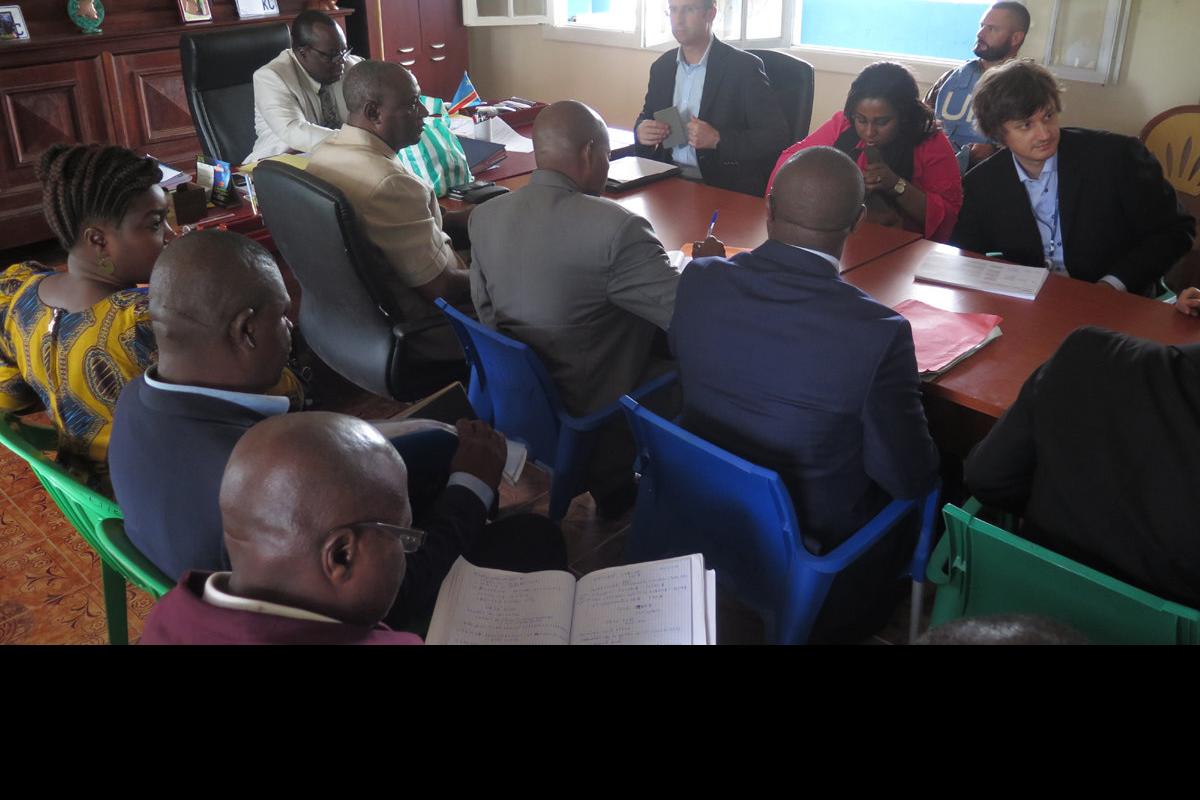 Réunion de concertation MONUSCO-OCHA-Gouvernement de la RDC et FARDCC autour des questions de stabilisation dans le Sankuru. Photo MONUSCO/Laurent Sam OUSSOU Sankuru, le 12 février 2018 – Une délégation de la MONUSCO et OCHA…