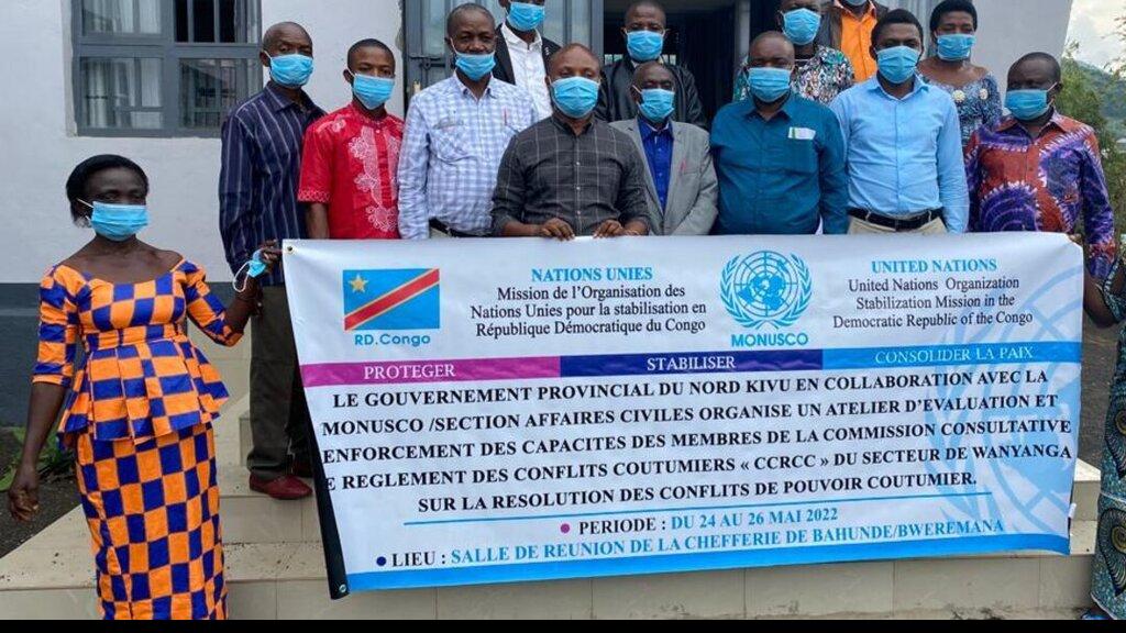 La section des Affaires civiles de la MONUSCO, en collaboration avec le gouvernement provincial du Nord-Kivu, a organisé du 24 au 26 mai 2022 à Bweremana (Nord-Kivu) un atelier sur la résolution des conflits à l'attention des…