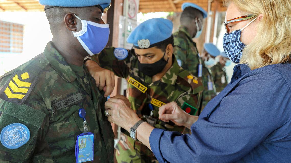 Des médailles pour l'unité d'aviation Sri-lankaise et la Compagnie d’infanterie rwandaise de la MINUSS