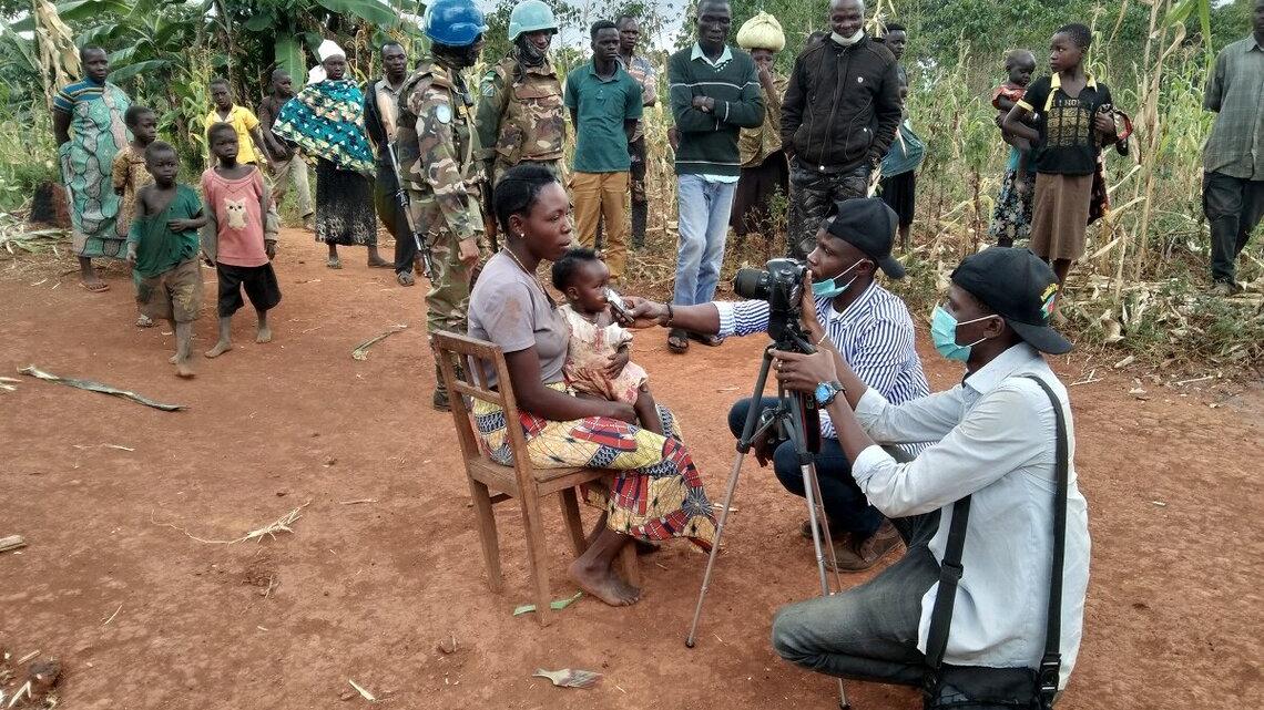 Ituri : deux journalistes de Bunia accompagnent des casques bleus de la MONUSCO sur le terrain à Djugu. Photo MONUSCO/Force Faire connaître le travail de la MONUSCO sur le terrain et le contexte dans lequel celui-ci s…