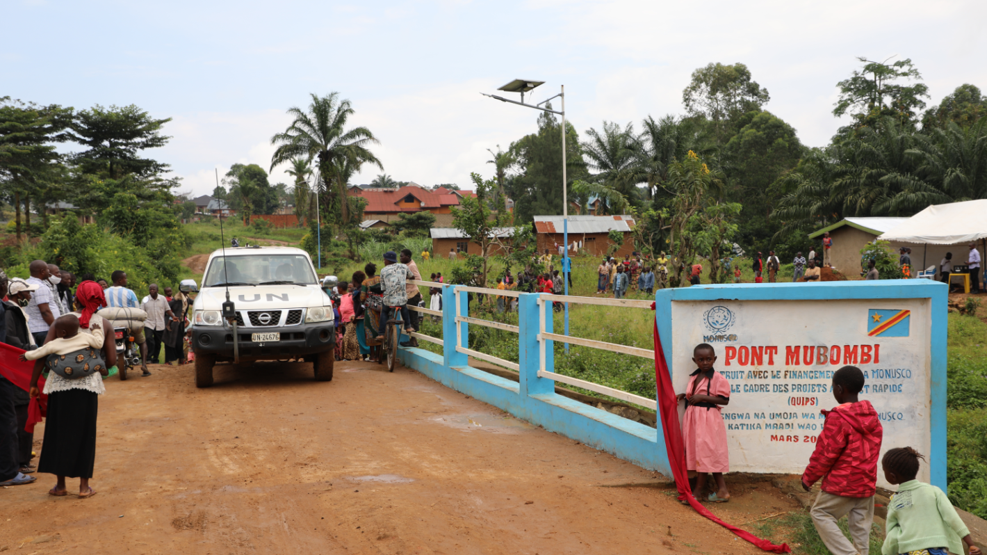 Beni : un nouveau pont pour faciliter la mobilité des personnes et des forces de sécurité. Photo MONUSCO/Joel Bofengo « Quand il pleuvait, nous nous faisions du souci pour nos enfants ». Les nombreuses femmes venues assister…